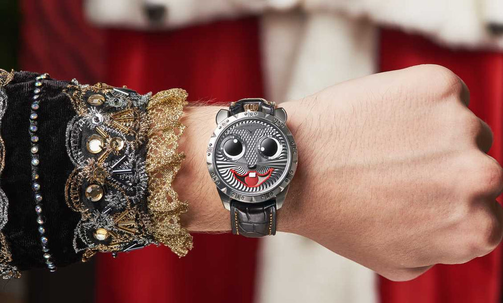 コンスタンチン・チャイキンがこの文字に特に注目したのは、時計メーカー的な理由がもうひとつあったのかもしれない。フランス語で「couronne」、ドイツ語で「Krone」という時計用語があるように、彼は12時位置にリューズを配した時計を作りたいという願望をずっと持っていたのです。これは、レピノフスキー機構をリューズとして文字盤の上部に配置する腕時計が開発された初期の時代を思い起こさせるものである。まさに「マウス・キング」が誕生する瞬間を待っていたのである。