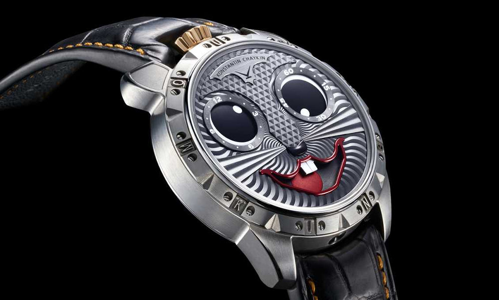 「ジョーカー」をはじめとする「リストモン」コレクションのために、コンスタンチン・チャイキンは時・分表示とムーンフェイズ表示のためのダブルディスクを開発しました。ムーブメントは不透明な文字盤の下に隠されていますが、その構造とデザインには、オートオルロジュリーの原則が貫かれています。コンスタンチン・チャイキンは、パール研磨、縦方向と円方向の精密研磨、マット仕上げのブラスト、手作業による滑らかな面取り、エングレービング、ポリッシュ仕上げのネジ穴、ピン、石、アクセルチップの球面研磨、亜鉛メッキロジウムメッキなどのクラシック技術を使用してムーブメントのすべての部品を丁寧に仕上げています。モジュールには合計8個の石が含まれ、摩擦を減らすように設計されており、ムーンフェイズ表示は59個の歯を持つ歯車によって駆動されています。